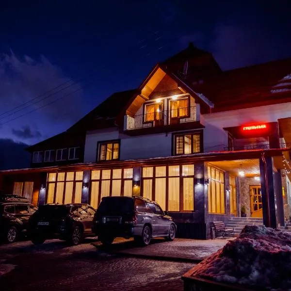 Situated in Mykulychyn, 13 km from Waterfall Probiy, Рандеву features accommodation with a garden, free private parking, a shared lounge and a terrace. The hotel has a sauna and room service.